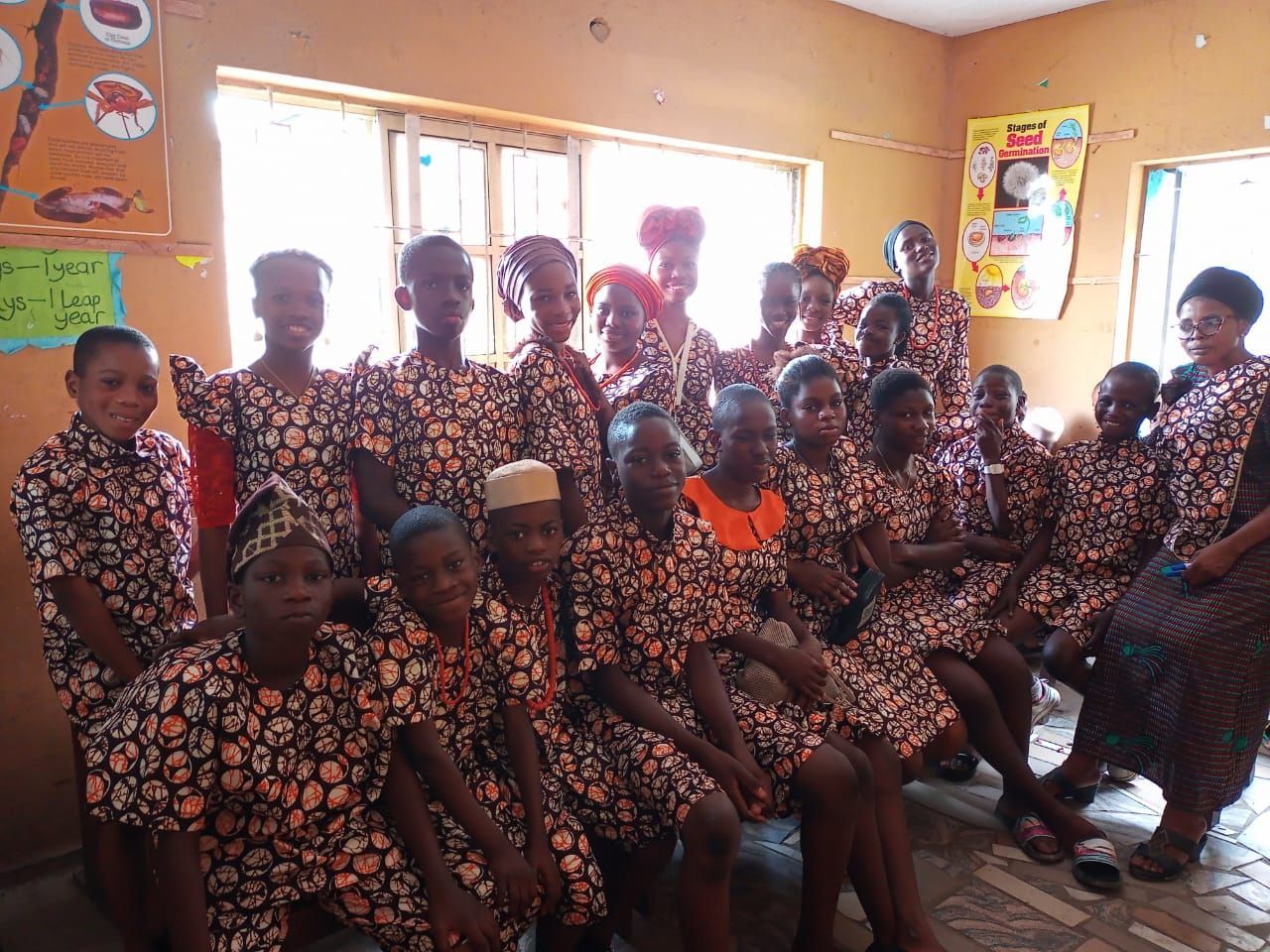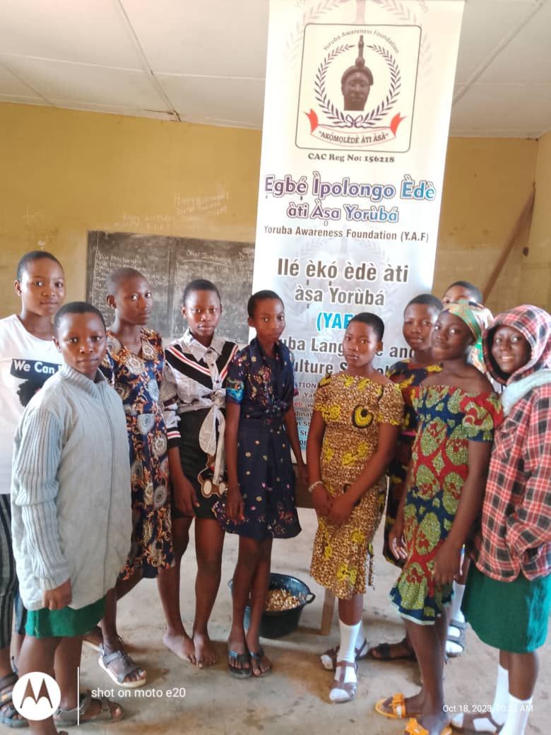 Another sets of students showing our organisation's banner - Yoruba Awareness Foundation (YAF)